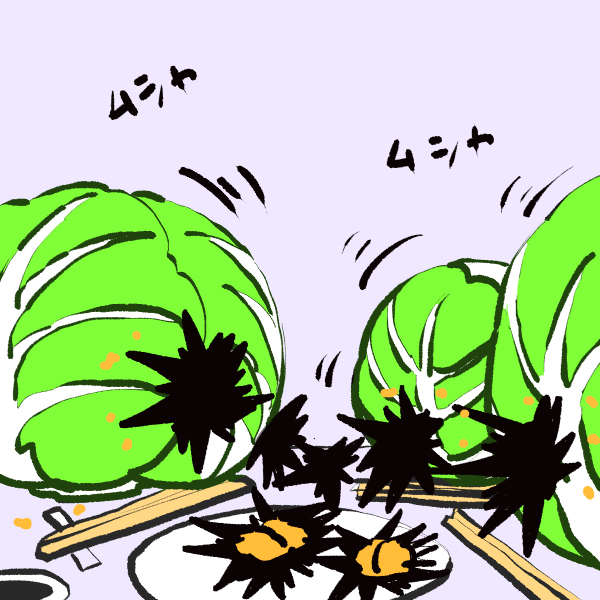 ウニを食べるキャベツのイラスト