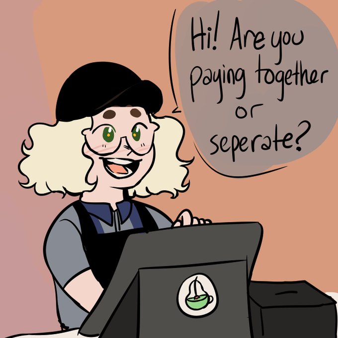found an old comic from 2018 about a cute job interaction! I worked at a coffeehouse that also had a froyo bar, but is unfortunately no longer in business