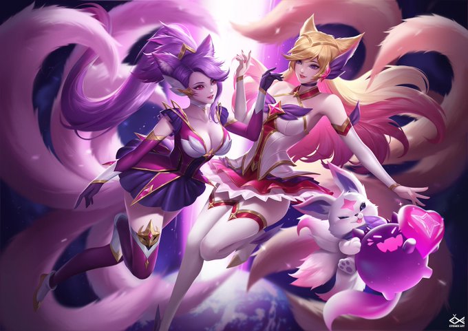 The four skins from last year to this year I've down successively.Jade Princess Ahri Snowfield white fox Ahri HELL WALKER Star Guardian Ahri