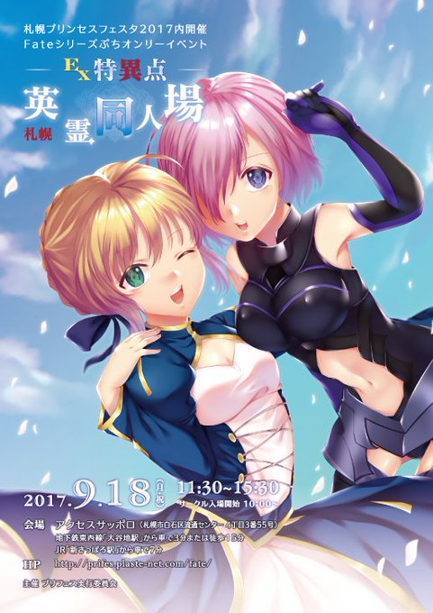 【告知】9/18のプリンセスフェスタ(@prifes_sapporo)内で開催されますフェイトシリーズオンリーイベントの フライヤーイラスト、デザイン担当させていただきました。お見かけの際はよろしくお願い致します。先日うpしたものが画質悪すぎたので再掲です。
