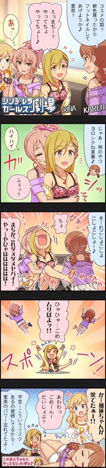 速水奏がコーヒー片手にくつろいでいる様に見えるがテーブルの下では敏感激弱な足の裏を塩見周子にくすぐられている。刺激に耐えられずコーヒーを零してしまうと後でLiPPSのメンバーによるくすぐり地獄が待っている為、奏は不利な我慢を強いられているのである。