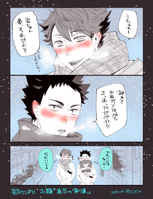 時間外ですが! お互いを「かわいいやつめ」って思ってる岩及かわいいと思うのです😇 お題「真冬の帰り道」 #岩及版深夜の真剣お絵描き60分一本勝負