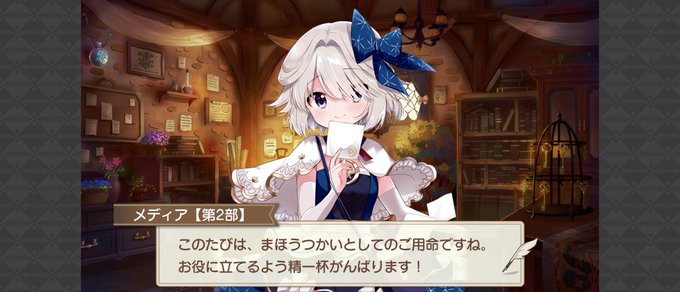第2部ガチャ·メディア編、石10連2回目(キーホルダーあり·リトライ30個)で、☆5メディア が来ました···セリフからすると、違うクラスも出来るのね(´ω`)きららファンタジア