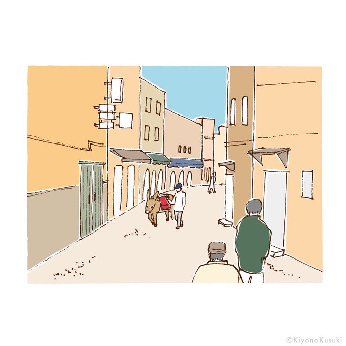 ラフでのもう1案は、マラケシュのバブーシュ屋さんを描いていました。