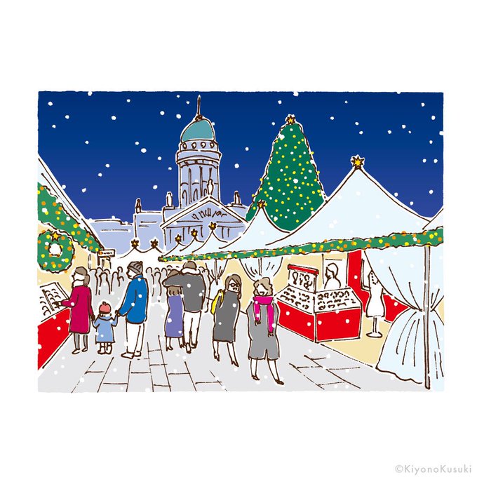 ドイツのベルリン、ジャンダルメン広場のクリスマスマーケットを描きました。