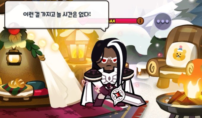 하 닼카 누가 초코쿠키 아니랄까봐 옷 너무 잘입음ㅋㅋ 반묶음... 애교머리뺀 하이포니테일... 찰랑찰랑 긴생머리... 블랙진에 흰망토... 소매 고정한 곤룡포에 안감 색 다른 퍼망토에 까만장갑에 노리개까지 야무지게 달고... 왕관-견갑-갑주 깔맞춤에 개너덜너덜 털린상태에서도 헤어 개이쁘게넘기기