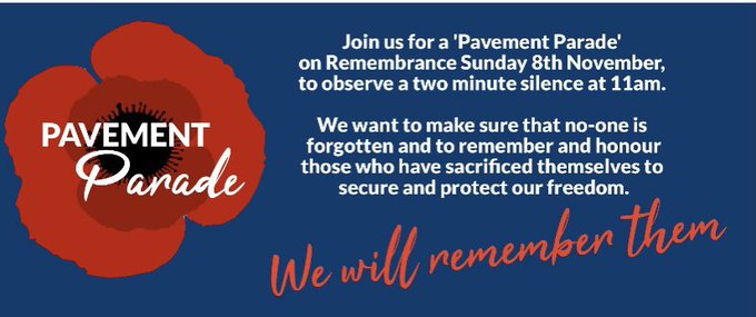 In the absence of any parades on Remembrance Sunday this year, there is a really nice idea being discussed that we should stand outside our houses at 11am in respectful silence. #PavementParade #RemembranceDay