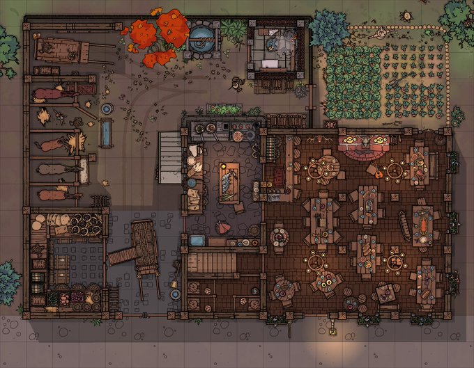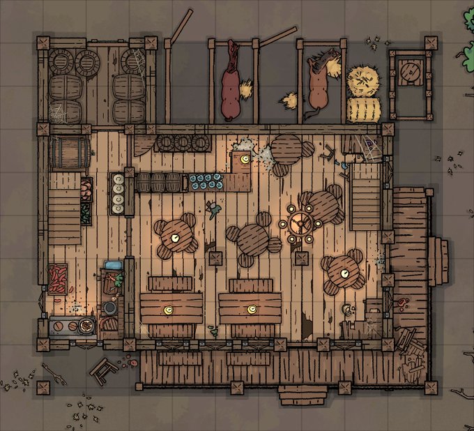 カジノや地下酒場、水上酒場など、多種多様な酒場のマップ素材80点と、酒場をテーマにした汎用シナリオやランダム・チャートなどをまとめたサプリメントのセットです🍺