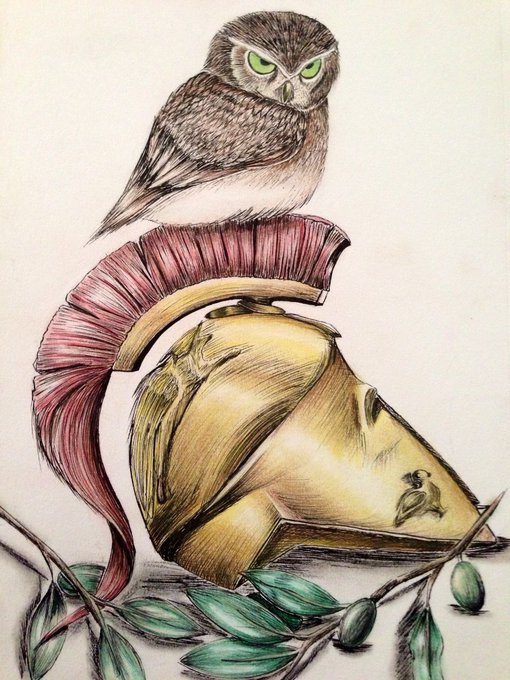 Atenea con mochuelo, búho o lechuza. 🦉 γλαυκῶπις. #ieda