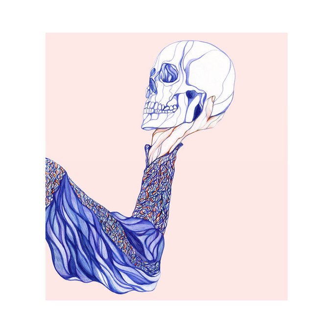 Early morning pencil claw - Getting stuck into this colour!!! #illustration #metamorphosis #skull #osorey #pattern #pencil
