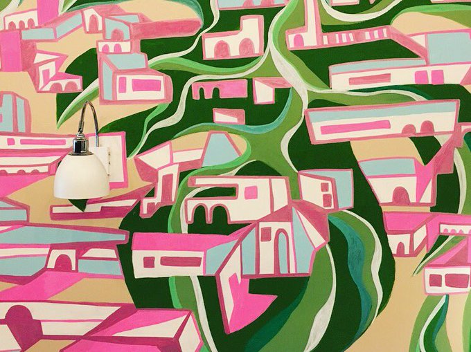 Super quick 2 day mural for @ASKItalian - DONE! #illustration #mural #interior #handpainted #italy #leaves #map #sorrento