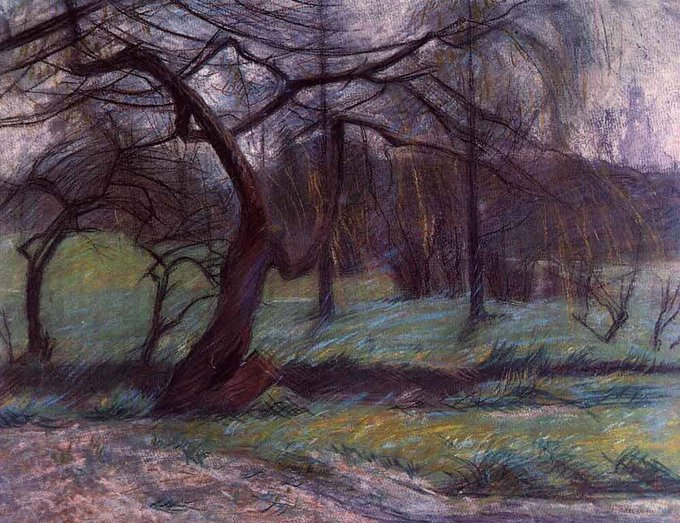 @MMirella28 #arts #artlovers #painting #donneinarte #music Umberto Boccioni - Officine a Porta Romana - La brughiera (1908)