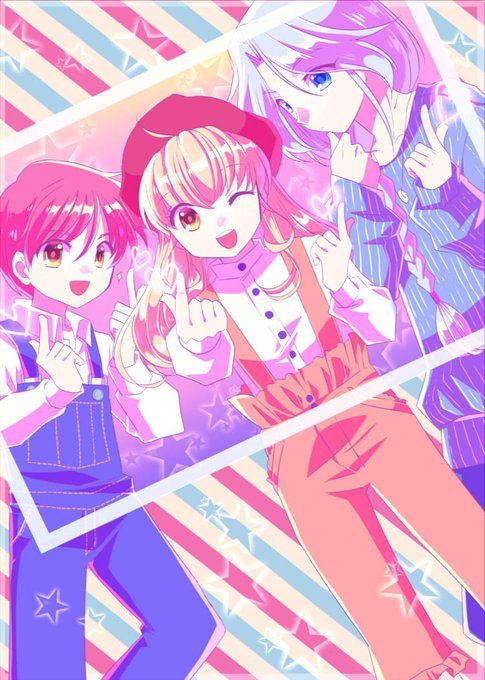 すずりさん(@suzuri_)よりリクエストというかアイデアをいただきまして、キュンですポーズな3人とひな祭り的な3人をば…!3人わちゃわちゃしているのが好きなので描いてて楽しかったです~~ありがとうございました(*´▽`*)キュンポーズ可愛いけど難しい、笑