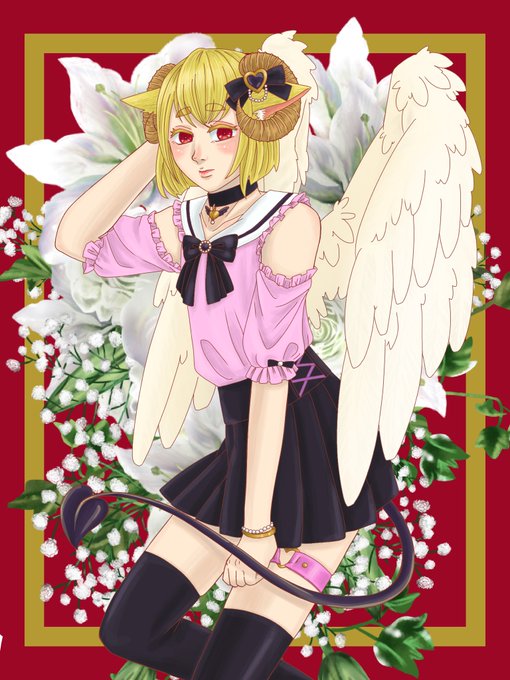 うちの男の娘紹介 ・詩音くん 最初に描いた地雷系の男の娘 最近は色んな服を着させるのが楽しい ・珠緒くん 性癖を詰め込んだケモミミメイドの男の娘 三人の中では年長さん チャイナ風の服を着せたい ・ユーリくん 天使と悪魔のハーフで、美少女顔の男の娘 スキンシップ多め とにかく可愛い
