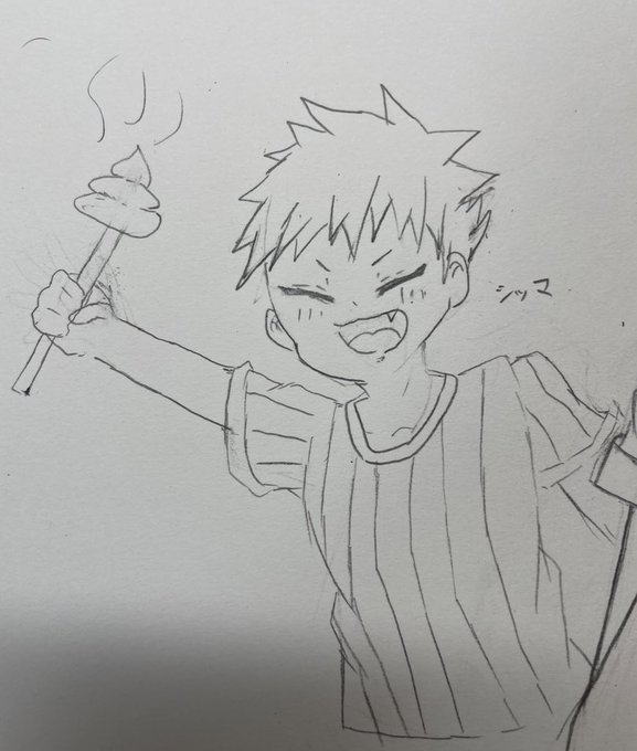 落書きで描いたオリキャラくん 塗ってもらいました!! かっこよく塗ってくれてありがとう!!!! @anime_sukidayo