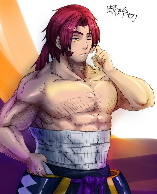 はいぜんニキ【@_8iZN 】に線画いただいて塗った蜻蛉切さんどす 筋肉描かないし描けないからとても楽しかったですありがとうございます はいぜんニキどこや