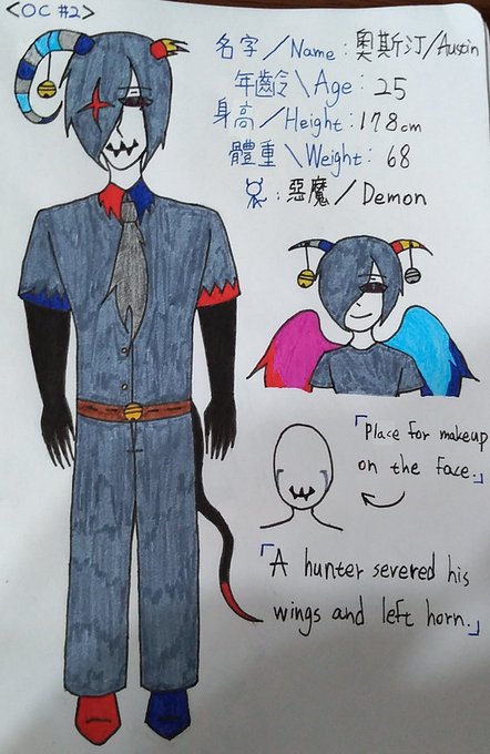 喜歡 "玩遊戲"。個性很病態(?。很愛笑的一位惡魔。角上掛的鈴鐺是媽媽的遺物。會以人類型態出現,名叫Leo/李奧。oc故事中的重要角色。