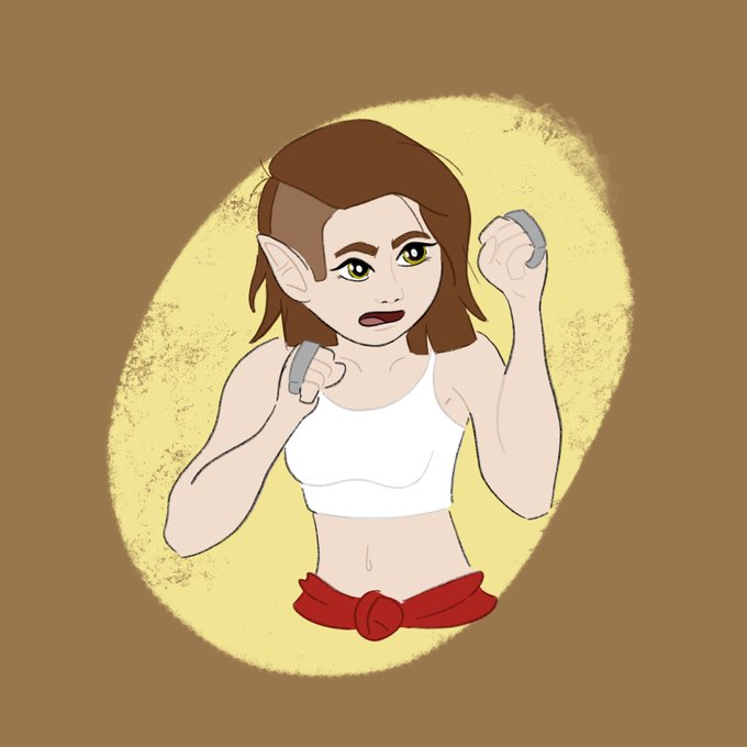 Half-elf fighter who favors her brass knuckles.