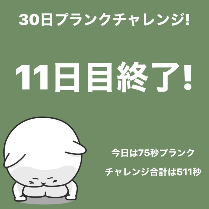 #プランクチャレンジ 11日目終了!今日は75秒プランクしました。 #30日チャレンジ https://t.co/Vu2E18KN5V