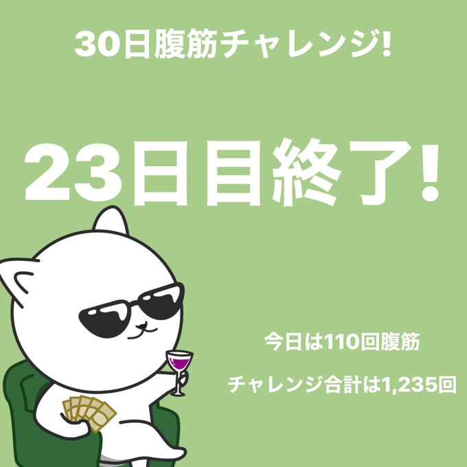 #腹筋チャレンジ 23日目終了!今日は110回腹筋しました。 #30日チャレンジ https://t.co/TXN7q6a1xH