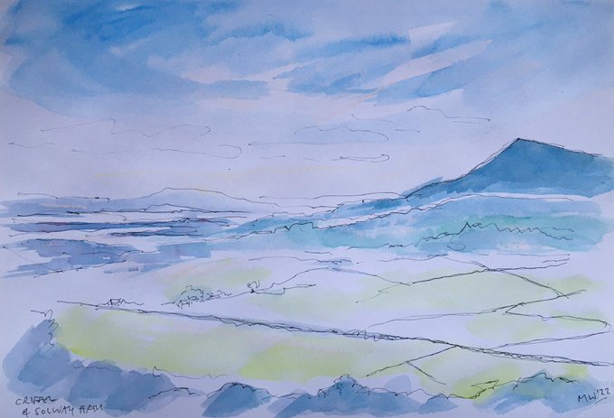 A quick sketch from yesterday - a bit cold for working on location! This is the view of Criffel and the Solway Firth from above the Mabie Forest, near Dumfries, Scotland #Scotland @VisitScotland