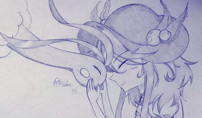 #深夜の真剣お絵描き60分一本勝負 #cochanのワンドロ保管庫 天子の旅より、短髪天子とチルタリス。