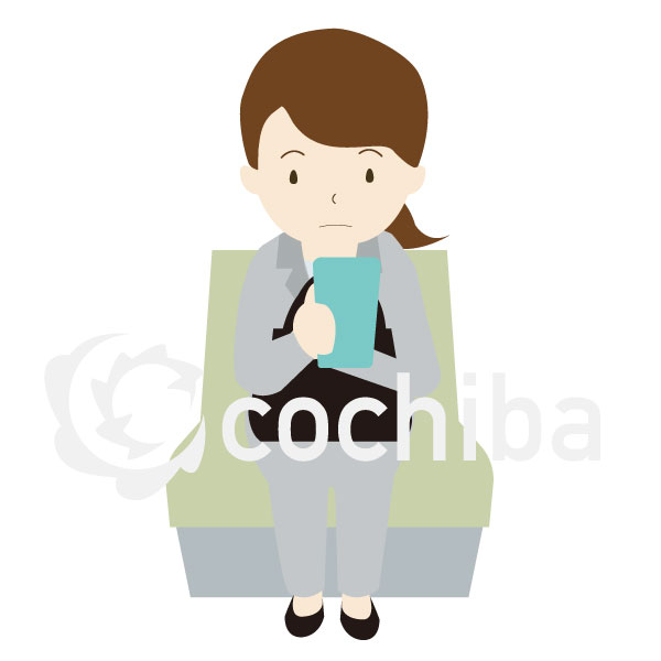電車で椅子に座りスマートフォンを見る女性会社員と会議風景のイラストを追加しました!