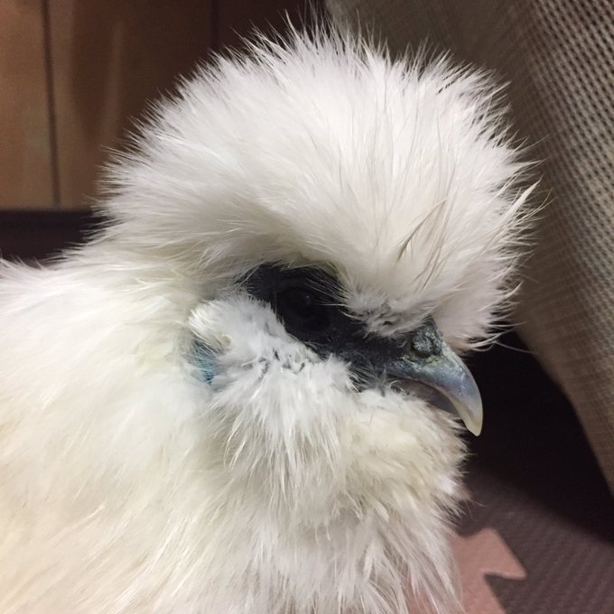 あたちはちゃんとじぶんでワッサワッサとキレイキレイできるんでつよ おふろはすきじゃないでつ お昼に洗ったのでふわふわ度が増してるめいちゃんです #烏骨鶏