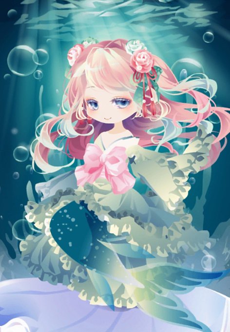 新ガチャコンプしたし、 とても綺麗で可愛いんだけども、 エリサショップで、かつて買い逃していた人魚ユニークゲットしちゃったから、着せないわけにはいかなかった。 #ココプレ