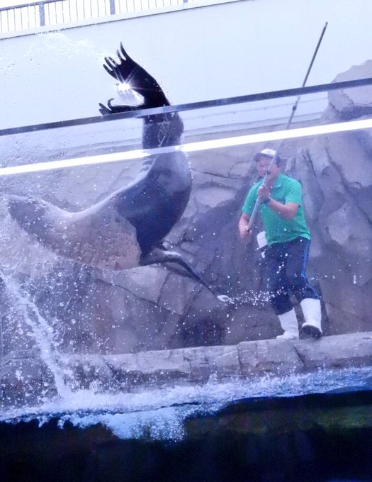 オタリアショー‼︎✨✨ 目の前で繰り広げられている中、それを見つめるアザラシも可愛かった😆♪ #うみの杜水族館 #オタリア #ゴマフアザラシ