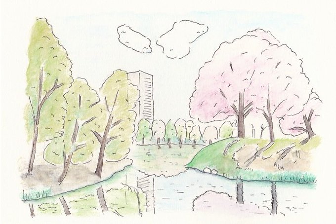 以前散歩のときに撮った中島公園を描いてみました。#透明水彩 #風景 #Watercolor #illustration #札幌市 #中島公園