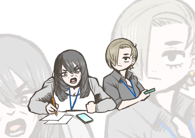 #女の子二人のイラストを貼る見た人もやる うちのOLたちと退役軍人たち