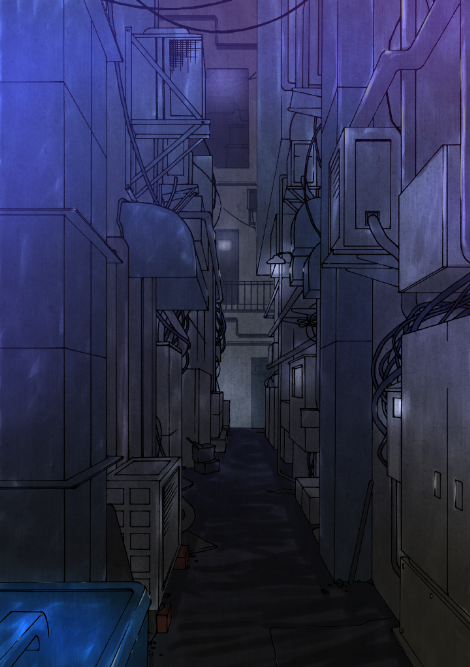 表紙進捗。線画は頂き物だけど色塗り頑張った💦 こんなシーンはないけど夜の路地裏徘徊する二人なイメージ。