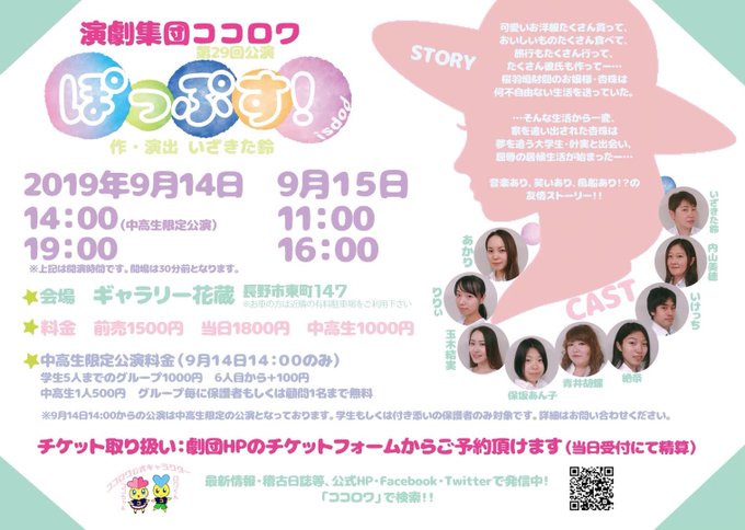 (↑中高生限定公演となります。どうしても14日しか空いてない一般の方はご案内致します、ココロワ公式DMか団員へご連絡下さい。)