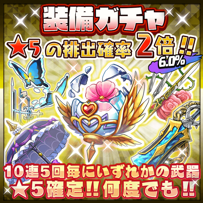 ☆5装備の排出確率が『6%』となった装備ガチャが、10/25(金) 17:59まで開催中‼️