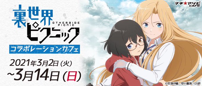 「月刊少年ガンガン」にて連載中、宮澤伊織先生原作・水野英多先生作画の人気漫画を原作とするTVアニメ「#裏世界ピクニック」× #マチアソビカフェ 全国5店舗 (東京 / 大阪 / 名古屋 / 徳島 / 福岡) による「裏世界ピクニック」#コラボカフェ が2021年3月2日〜3月14日まで開催!