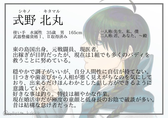 こちら企画(@weapon_twin )に3人目参加させていただきます〜 関係はまっさらなので、友人やバディなど募集中です。 ショタおじさんをよろしくお願いします〜 #WIT_CS #WIT_使い手CS