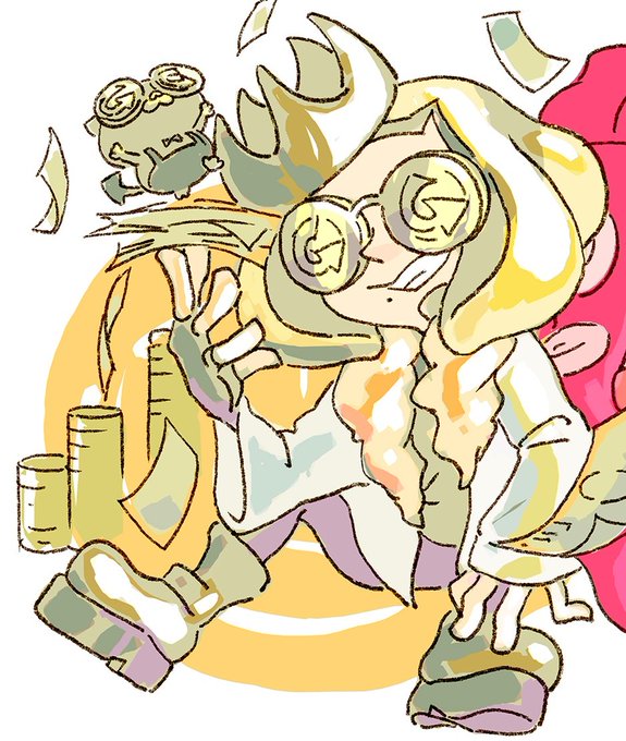 - hime cut squid: also a rookie, constantly trying different weapons to see which one sticks, but is fickle. she likes to study her weapons though and knows a lot in theory, it's just a matter of practice. always tries her best, but not as competitive as the others.