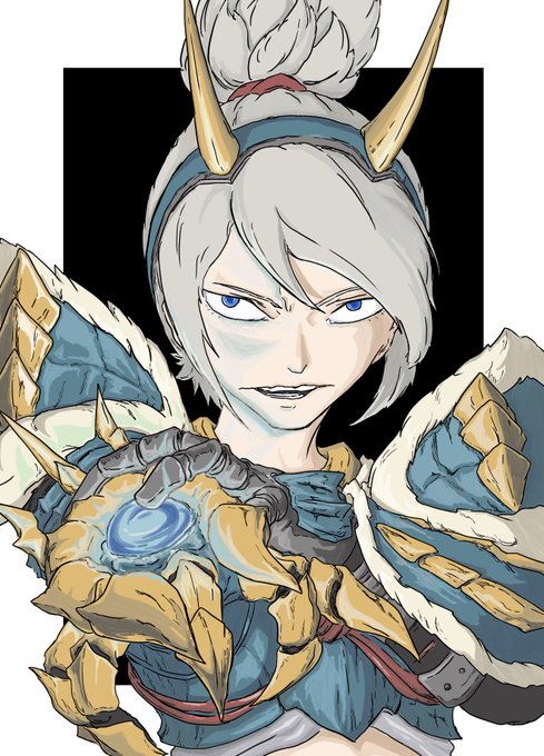 MH4の加工屋の娘じゃないか? と噂されているミネーレさん。 確かにインナーの色に至るまで共通点が多い…顔以外。 #モンスターハンター #ミネーレ #イラスト