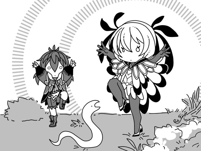 ポートフォリオ整理で古い作品見てたら描いたの忘れてた落書きにふふっとなってしまったので掲載。アデリーが太ましい。 色がなくなってしまった世界に色を取り戻すため、カラスの神様と一緒に冒険する話。本文はない。
