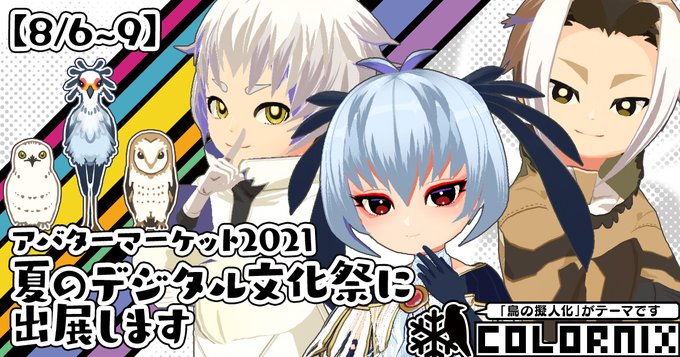 アバターマーケット2021の入稿終わったー! 以前のツイートのとおり「ヘビクイワシ」「シロフクロウ」「メンフクロウ」の3人を出したよ! 価格は前回よりお安くなりました。 近日中に出す告知記事のヘッダー画像を貼って今日の作業は終了。また後日ー。