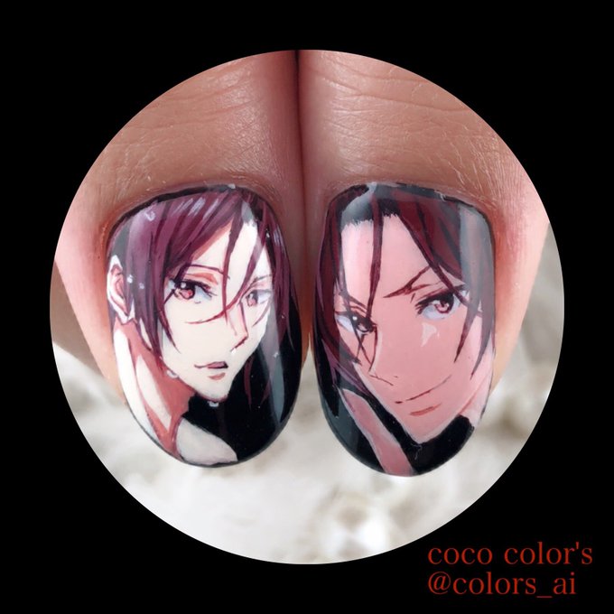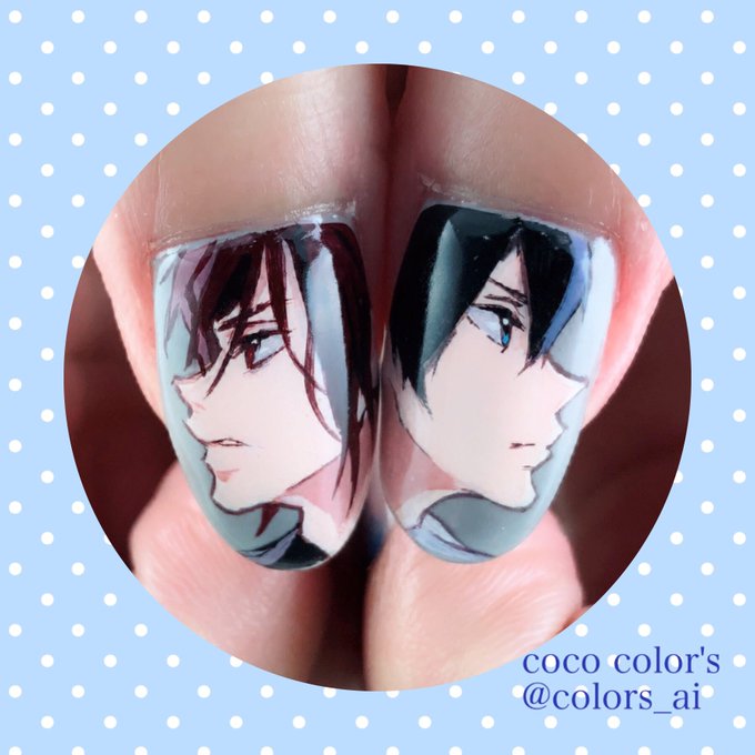 お客様オーダー、Free!凛ちゃんハルちゃん痛ネイル。秋カラーで!12話....まであと少し! #痛ネイル