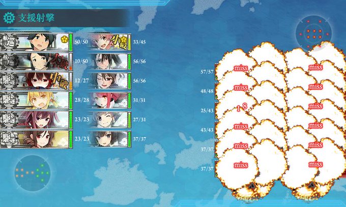 ボス前洋上補給、護衛退避済み由良さん時雨ちゃん。はてさて。