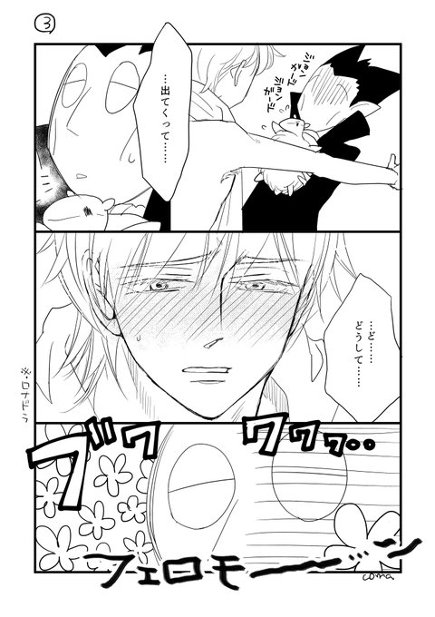 フェ□モン症パロのつづきなんですが、フキダシの形を直したりしたので1、2枚目もまとめて再掲します~ ※ロナドラ 今回も途中まで