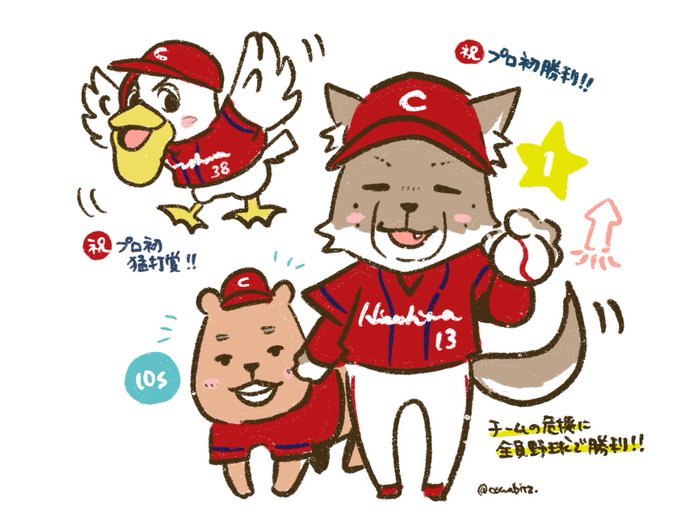 こいほー!主力を欠く中、全員野球で勝利!勝ち絵久々すぎて描き方忘れちゃったよ。 もりうらくん初勝利おめでとう!カピ守護神はもう文句なし。うぐぅも進塁打や猛打賞で偉かった!みんな偉いぞ!ようやっとる!