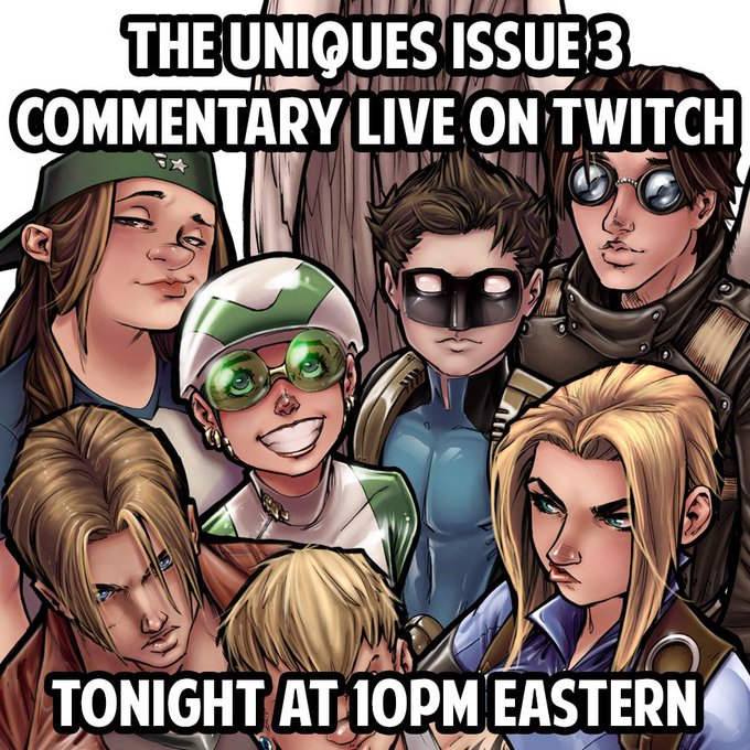 We're doing an interactive director commentary for the issue #3 of The Uniques on Twitch tonight at 10pm eastern. Bring your comments and questions! https://t.co/7Bw35BYWZH