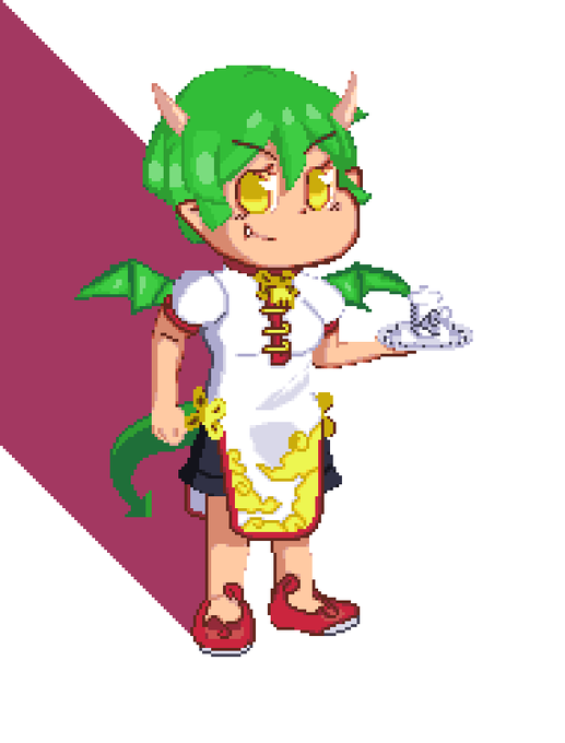 OK I drew another Puyo, this time an alt outfit for Draco!!! I think I'm getting better at pixels, SLOWLY!!! IT'S FUN!