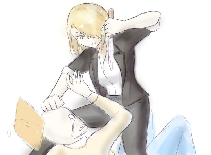 day 10 inktober yakuza lady with a crowbar shoves face into knee baaam