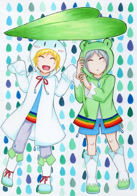 てるてるぼうずとかえるなこ(一次創作、2017/7) #過去絵を投げて絵を描いた気になろうキャンペーン