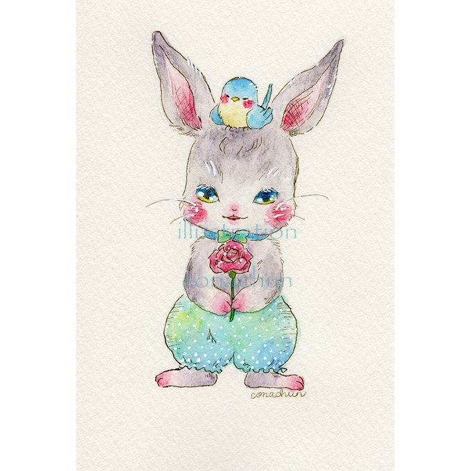 水彩色鉛筆で絵本のような動物や植物などを描いています。特に猫がだいすき♡